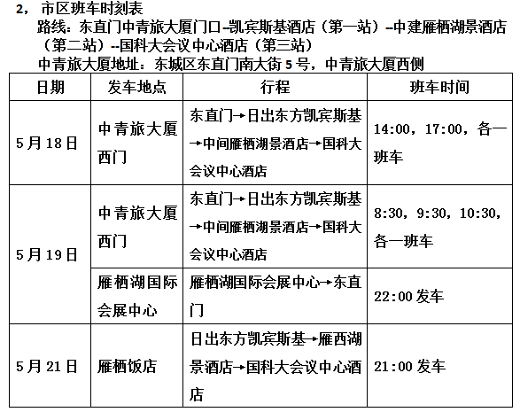 注:會議期間參會代表如需單獨用車服務,請提前一天聯係酒店會務組谘詢台,會務組可協助安排,提供有償用車服務。