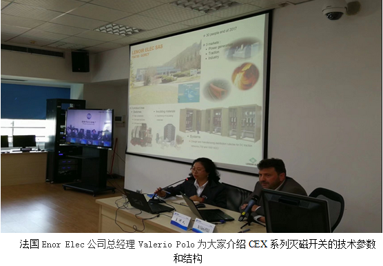 Aurlea集團CEO Daniel Torrents和Enor Elec公司總經理Valerio Polo為大家詳細介紹了CEX係列滅磁開關的技術參數和結構,與會人員就此展開了激烈研討,向家壩分會場的參會人員通過視頻與專家直接對話,線上線下互動交流氣氛熱烈和諧。