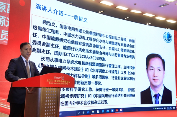 會上,國家電網調度控製中心原副總工、水電學會水電和新能源運行管理專委會主任委員裴哲義作《清潔能源發展與挑戰》的特邀報告。