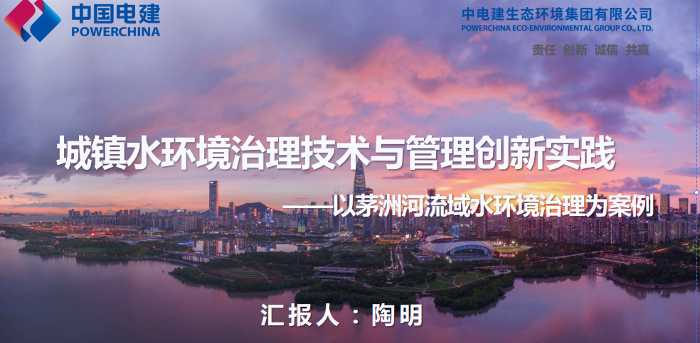 劉金煥:下麵請中電建生態環境集團有限公司副總經理陶明同誌作報告,題目是《水環境治理技術與管理創新實踐—以茅洲河水環境治理為案例》。