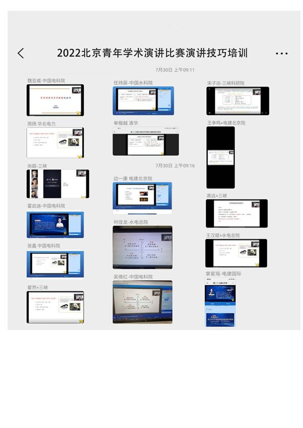 北京青年學術演講比賽是北京市科協青年人才工作的重要內容,是發現、培育、凝聚優秀青年科技工作者的重要途徑。2022年將舉辦以“弘揚科學家精神,彰顯科技界擔當”為主題的第二十三屆青年學術演講比賽。為了提升青年學者演講水平,北京市科協於7月30日在線上開展第23屆青年學術演講比賽演講技巧培訓,北京水力發電工程學會16位青年科技工作者參加本次培訓。