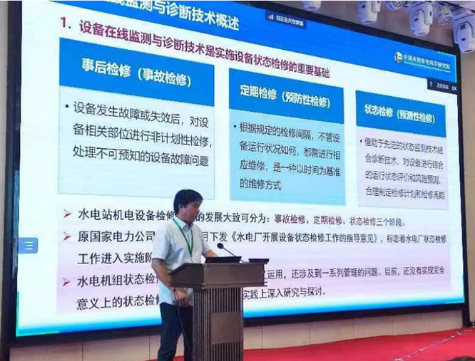 中國電機工程學會水電設備專委會副主任委員、中國水利水電科學研究院水利部機電研究所副所長潘羅平做了《水電機組在線監測與診斷技術》的專題報告。設備在線監測與診斷技術是確保機組安全、穩定、高效運行的保障。建立在機組運行狀態監測與診斷之上的狀態檢修,還需要在理論和實踐上深入研究與探討。