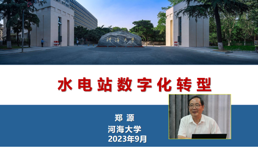 中國電機工程學會水電設備專業委員會副主任委員、河海大學能源與電氣學院鄭源教授在線上做了《水電站數字化轉型》的專題報告,報告了水電站信息化建設、數字孿生技術應用的最新研究和應用成果。