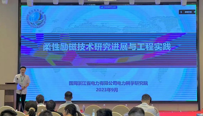 國網浙江省電力有限公司電力科學研究院勵磁專業負責人張建承做了《柔性勵磁技術研究進展與工程實踐》的專題報告。柔性勵磁利用IGBT構建基於電壓源換流器的兩級功率變換拓撲,新增頂值電壓和無功阻尼2個控製維度,大幅提升同步機組電壓支撐和寬頻振蕩抑製能力,更有力支撐新型電力係統安全穩定運行。