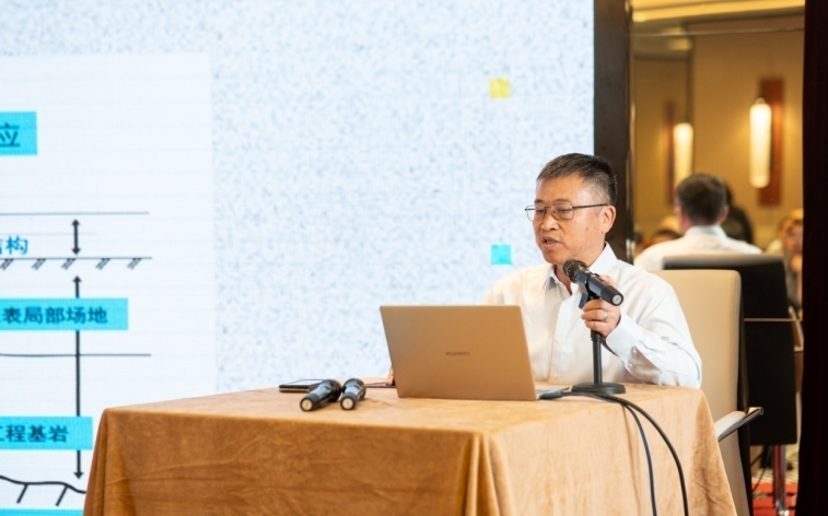 上午學術交流環節由中國地震局地質研究所周本剛研究員主持。陳厚群院士以“對地震動輸入的探討”為題,詳細介紹了大壩場址地震動輸入概率分析方法以及存在的關鍵技術難題,提出以我國西南部地區強震記錄為依據,構建不同震級不同震中距地震反應譜數據庫,通過分段插值方法來確定大壩場址設定地反應譜的新思路。