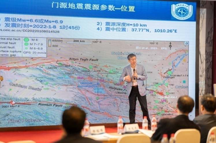 下午會議由中國地震災害防禦中心張鬱山研究員主持。中國地質大學(北京)徐錫偉教授以“蘭新鐵路隧道同震錯斷特征與啟示”為題,彙報了門源地震基本參數、地震地表破裂特征以及蘭新鐵路的災害特征,提出重大工程建設不僅要考慮近場強地麵運動還要考慮活動斷層同震錯動的直接破壞作用。