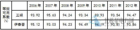 表 3-1 三峽電站與伊泰普電站(目前世界第二大電站)可靠性指標對比