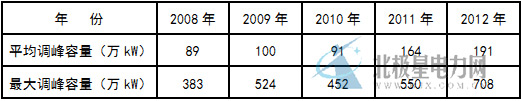 表3-3 2008年~2012年三峽電站調峰情況統計表