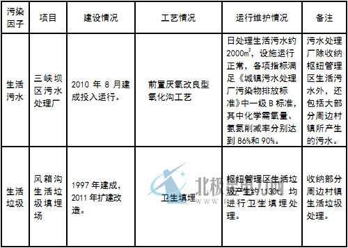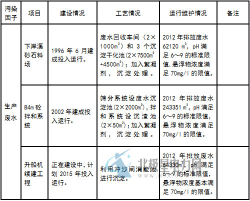 針對生產廢水、生活汙水、生活垃圾等三峽工程壩區的環境汙染源,主要采取的環境保護設施或措施見表5-1。