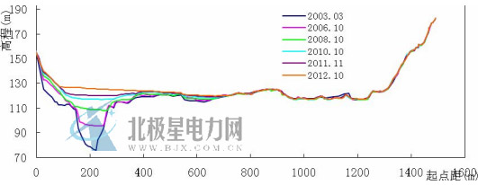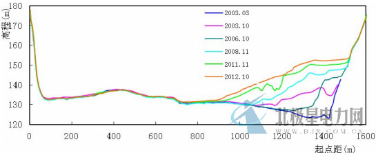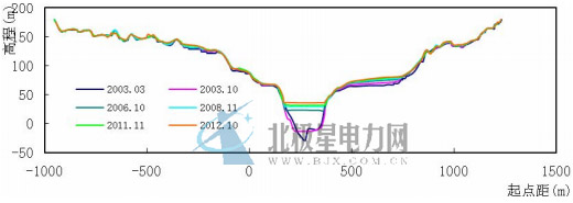 2003年3月~2012年10月,庫區典型斷麵衝淤變化如圖5-2所示。