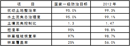 表5-2 2012年水土保持監測指標與竣工驗收指標對比表