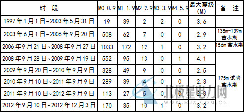 表5-5 三峽水庫蓄水前後重點監視區地震統計