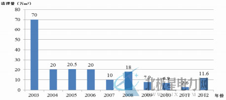 三峽水庫蓄水運行以來,2003 年3月~2012 年10 月,壩前段(大壩~廟河段,長約15.1km) 175m以下河床總淤積量為1.44億 m3,深泓平均淤厚32.6m,最大淤厚64.8m。從淤積部位來看,90m高程以下河床淤積泥沙1.08 億m3,占總淤積量的75%, 110m高程以下河床淤積泥沙1.31 億m3,占總淤積量的91%。壩前泥沙淤積體低於電廠進水口的底高程108m,不影響機組取水。船閘上、下遊引航道有局部淤積,經過清淤,未影響通航。
