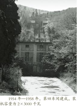 12月31日, 第四車間第一台 3000 千瓦機組發電。采用立軸混流 式水輪機,設計水頭30 米,引用流 量12 立方米/ 秒。同時架設的由石 龍壩至安寧昆明鋼鐵廠的雲南第一 條35 千伏、全長8 公裏輸電線路建 成投產(供昆明鋼鐵公司用電)。同 時由昆明鋼鐵廠建成35 千伏變電站, 為緩和第一個五年計劃期間昆明地區電力緊張局麵起到一定作用。