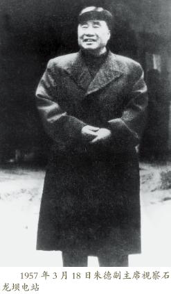 3 月18 日上午,朱德委員長在視察工作途中路經石龍壩發電廠。黨總支書記張萬科向朱德委員長彙報了該 廠生產工作情況。朱德委員長問:“你是電廠廠長,你曉 26 1957 年3 月18 日朱德副主席視察石 龍壩電站 青年突擊隊合影 得它為雲南、為中國的解放和民族的興旺做出了 多少貢獻嗎?”“曉得,請首長放心”。“曉得就行 囉,你們要好好保護電站,它是中國水電發展的 老祖宗喲”。朱德委員長對在場的人說,“你們可以多種一點樹,種一些花,綠化一下廠區,把生產搞好”。