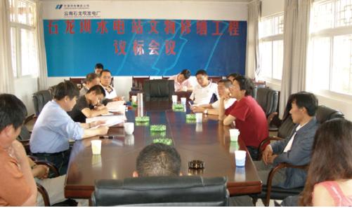 2月20 日,受國家文物局委托,雲南省文物局副局長餘劍明,雲南省考古研究所研究 員、雲南省文物鑒定委員會古建築專家李炳楠、昆明市文化局文物處處長李東明等一行11 人到石龍壩發電廠協商了修繕方案,進行了保護工作的安排和部署。