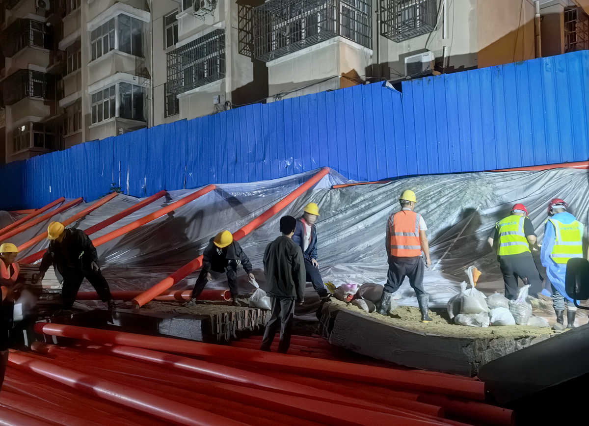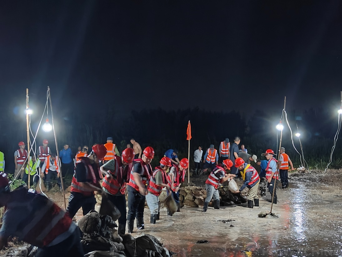 電建市政公司南京浦口灌區一標項目接到區防汛指揮部支援請求,石磧河堤背在巡查中發現滲流,項目部立即組織三十餘員工抵達現場,經過近三個小時的奮戰,完成圍井填築,滲流被完全封堵,險情消除。