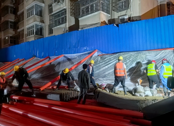 日前,河南登封市出現大範圍強降雨,市區內一老舊小區擋土牆坍塌,水電三局登封項目部派出以“黨員先鋒隊”為主的搶險先遣隊持續奮戰3個多小時,築牢了擋土牆地基,維護了群眾生命財產安全,獲得了市政府的高度讚揚。