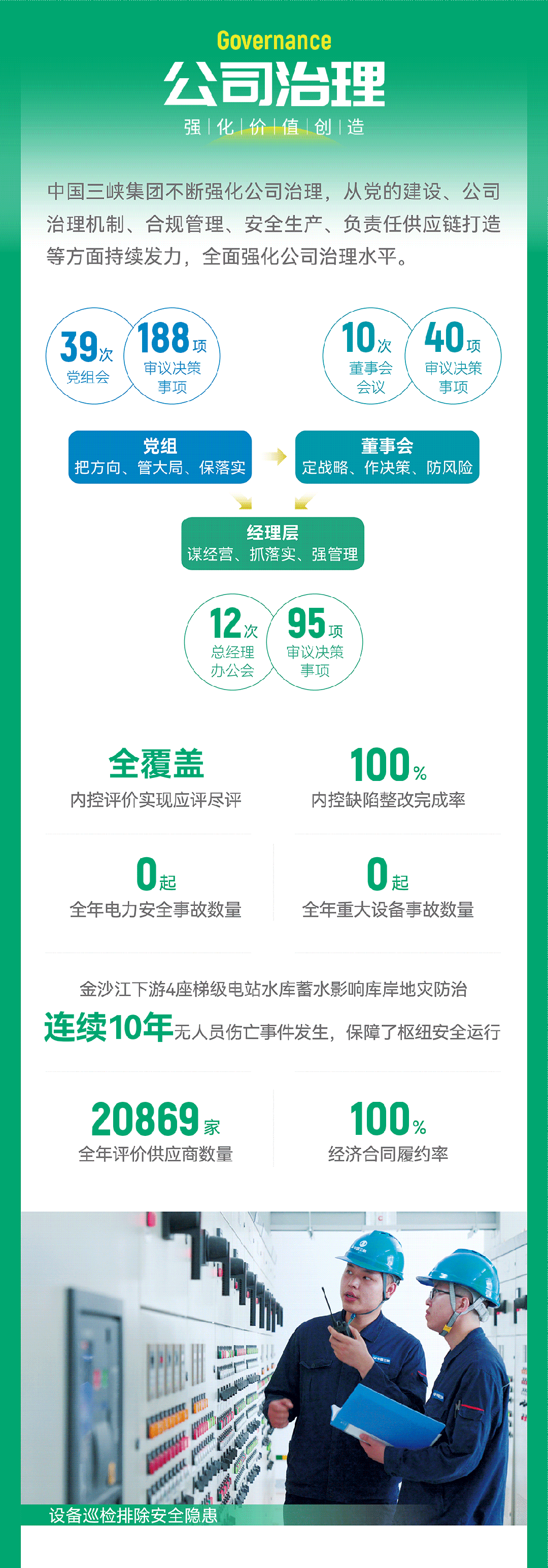 報告主體部分圍繞三峽集團清潔能源和生態環保主責主業,以集團品牌口號“為綠色生活賦能”為主題,以GREEN(綠色)為主線,融入ESG(環境、社會、公司治理)理念,通過公司治理(Governance)、改革創新(Reform and Innovation)、清潔能源(Energy)、生態環保(Eco-Environmental Protection)、美好與共(Nice)等五大篇章,係統披露三峽集團2023年深入貫徹新發展理念和可持續發展理念,始終堅守綠色發展賽道,在建設世界一流企業、奮力實施“兩翼齊飛”、充分發揮“六大作用”、實現自身高質量發展的同時,努力創造經濟、社會、環境綜合價值的責任擔當和不懈努力。
