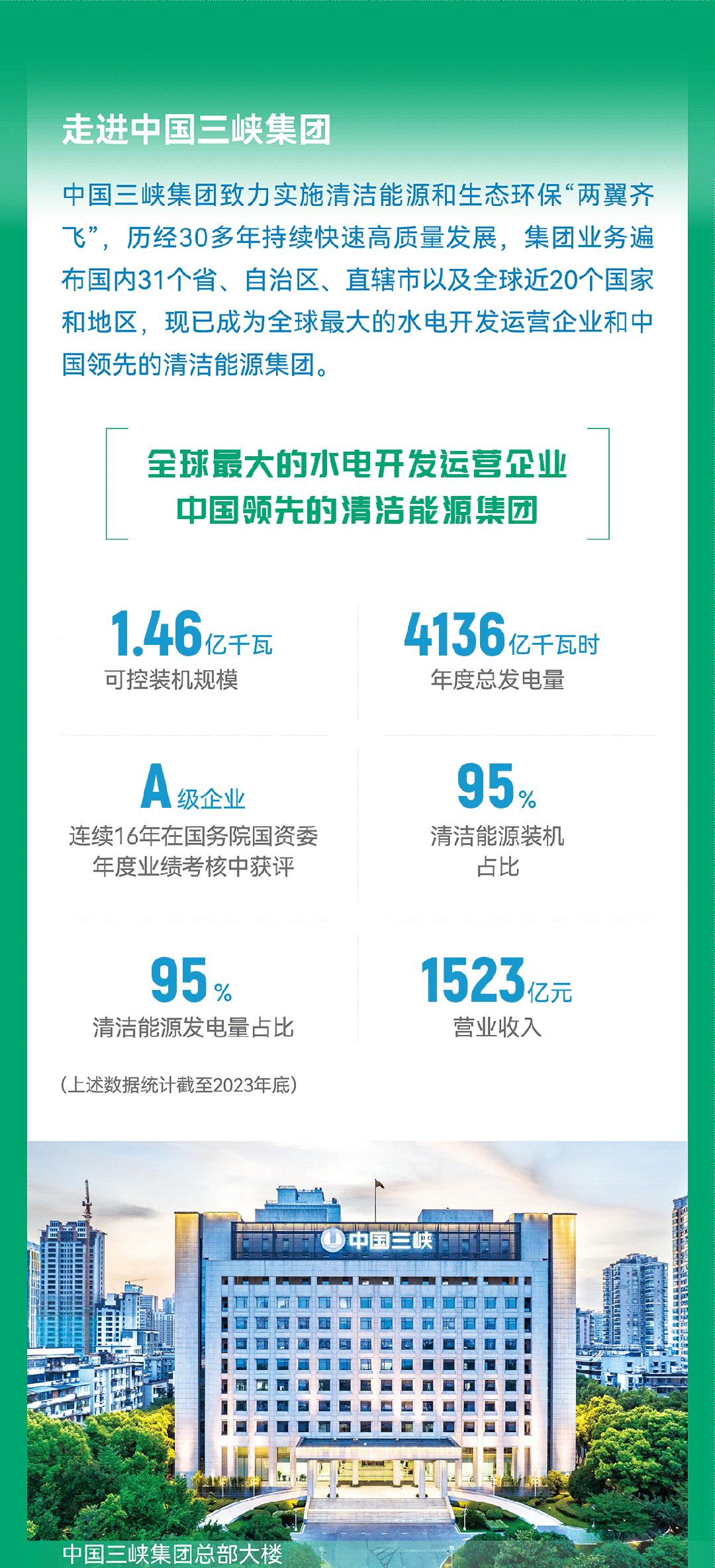 近日,三峽集團正式對外發布《2023年可持續發展報告》(以下簡稱報告),向利益相關方和社會各界公開披露三峽集團過去一年履行社會責任的實踐和成效。該報告是2010年以來三峽集團連續發布的第14份可持續發展報告/社會責任報告,並再次獲得中國企業社會責任報告評級專家委員會給予的“五星級”卓越報告評價。