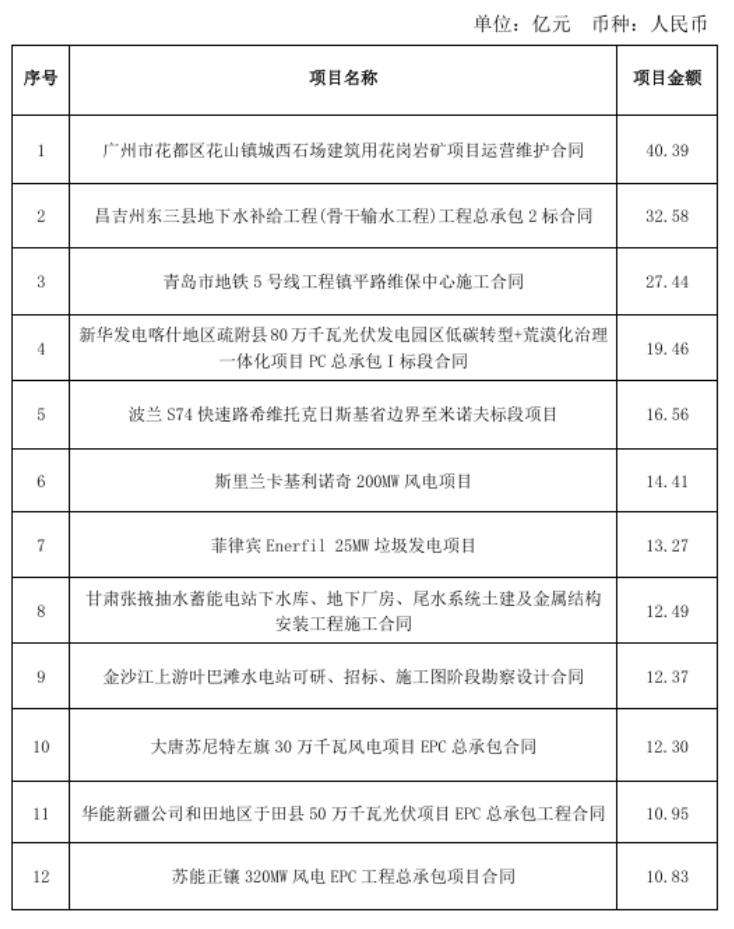 2024年7月,公司新簽合同金額在人民幣5億元以上的單個項目有: