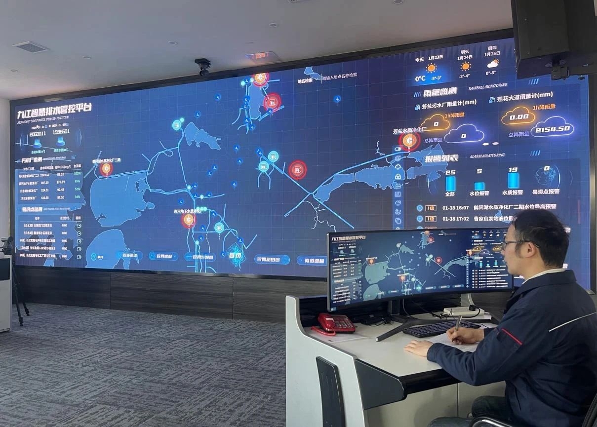 ▲ 在江西九江智慧水務調度中心裏,工作人員正在監控水務設施運轉,擔當城市的“水管家”。攝影:劉鄧玲