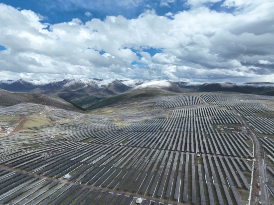 中尼邊境,格桑花開。在日喀則市桑珠孜區江當鄉,冬日暖陽下,1000餘畝的太陽能光伏板陣列氣勢恢宏。光伏新區帶來新麵貌,村民從前燒柴火、牛糞的場景,如今已被家家戶戶便利的取電用電所取代。