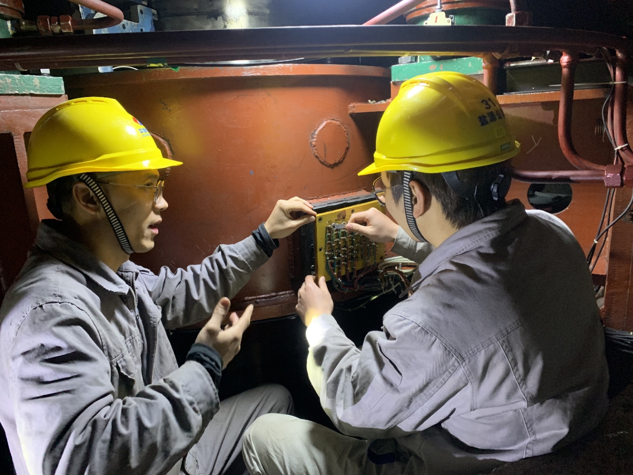 確認情況後,他與同事顏舜立即開始處理,他當機立斷,一邊做一個支架撐住技術供水總管,一邊再做一個護套將技術供水總管固定在支架上,支架底部用電鑽轉孔打上膨脹螺絲固定。經曆數小時的持續奮戰,當支架加裝完畢後,技術供水總管震動立刻減小下來,再次確認震動情況改善後,梁俊長長德舒了一口氣。
