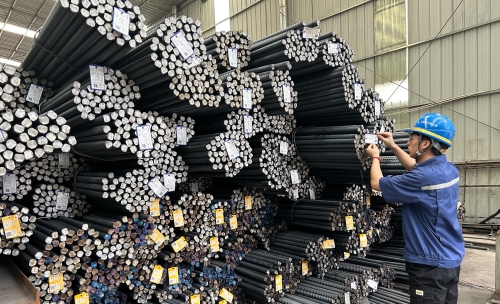 萬怡在驗收鋼筋