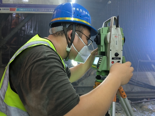 當施工現場進入下一個步驟前,測量必須進場放樣複核,根據圖紙計算測量數據進行施工,這就要求測量組必須隨叫隨到,無論是悶熱的洞子,還是水簾洞的洞子,他們總是衝在最前麵,不停地在現場奔忙。