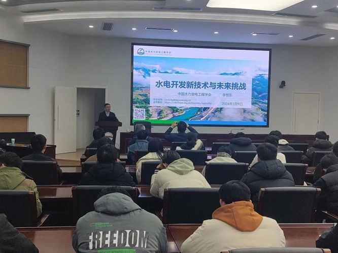交流會結束後,李世東作了題為“水電開發新技術與未來挑戰”的報告,報告中提到中國水電發展處於世界領先地位,重大水利水電工程建設實現曆史性突破。學會秘書長助理兼科普部主任楊永江介紹了“雙碳與水電發展”,指出麵向“雙碳”國家戰略,未來水電發展將更加多樣化,並朝著水電、風電、光伏發電等互補的方向發展,需要大量水電和新能源建設人才的加入,希望同學們努力學習、開拓進取,為未來水電和新能源事業的高質量發展做出積極貢獻。學院相關教師和近百名學生參加報告會,並與專家積極互動交流。