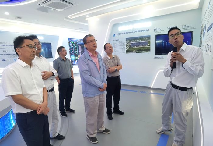 當天,張野一行還赴湖北應城對世界首台(套)300兆瓦級壓縮空氣儲能電站進行調研。該電站於今年4月9日並網發電,儲能容量達1500兆瓦時,係統轉換效率約70%。該工程是國家新型儲能試點示範項目,由中國能建數科集團和國網湖北綜能共同投資建設,利用廢棄鹽礦作為儲氣庫,每天可儲能8小時、釋能5小時,全年發電量約5億千瓦時,將有效提升區域電網的調峰能力,促進電網消納更多風電、光伏等新能源。經過聯合技術攻關與實驗論證,項目關鍵核心技術裝備實現100%國產化,攻克了工藝係統集成、地下儲氣庫建造、關鍵裝備研發等諸多難題。