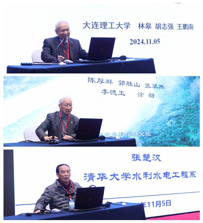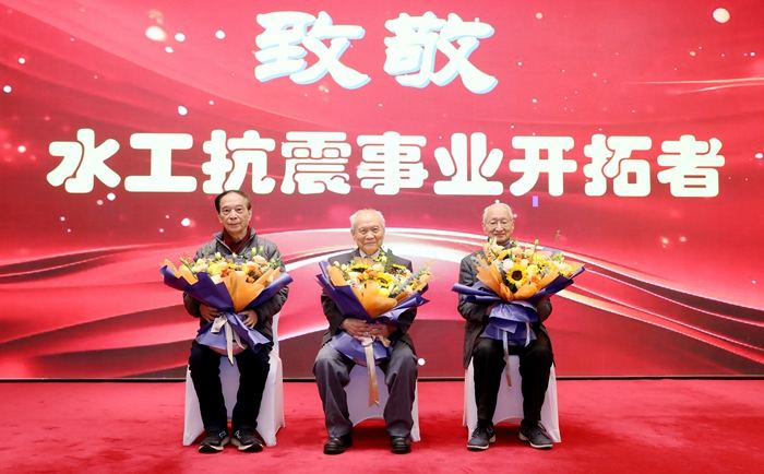 大會開幕式上,設置了向我國水工抗震事業開拓者——林皋院士、陳厚群院士張楚漢院士致敬的特別環節。鄭聲安秘書長在致敬中指出,70多年來,三位院士從無到有開創了我國水工抗震研究事業引領國內水電工程抗震研究人員,圍繞保障水電工程抗震安全的目標,貫徹從水電工程實際出發的理念,攻堅克難,砥礪前行,持續開展科研攻關和技術研發,創建了具有中國特色、處於國際領先水平的水電工程抗震研究設計體係,解決了工程抗震設計建設中的諸多難題,為保障我國水電工程抗震安全和推動我國水電事業蓬勃發展做出了不可磨滅的卓越貢獻。學會號召廣大水電科技工作者,以習近平新時代中國特色社會主義思想為指引,堅持“四個麵向”,心懷“國之大者”,大力弘揚林皋院士、陳厚群院士、張楚漢院士等老一輩水電科學家精神,堅守初心使命,立誌科技報國,不斷向科學技術廣度和深度進軍,加快實現高水平科技自立自強,為江河安瀾、強國建設、民族複興接續貢獻智慧和力量。