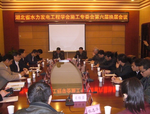 2014年3月19日上午,第六屆施工專委會換屆及學術交流會議在湖北省嘉魚縣山湖酒店勝利召開。參加會議的有湖北水力發電工程學會名譽理事長郭際康、秘書長趙英林,五屆專委會主任周厚貴、六屆專委會候任主任江小兵及部分專委會委員單位的代表共26人。