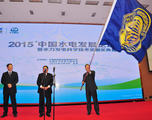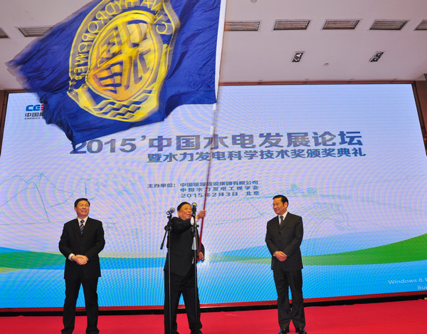 李菊根:尊敬的各位領導,我們這麵"中國水電大旗"已經在水電行業飄揚9年了,凝聚了大家的辛勤勞動和智慧血汗,為祖國建設起3億千瓦水電站立下了汗馬功勞,她轉戰南北,我們在座的同誌戎馬一生。我們學會首先感謝中國能源建設集團有限公司舉辦了這一次很好的"2015'中國水電發展論壇暨水力發電科學技術獎頒獎典禮",下麵敬請中能建集團副總經理蘭春傑講話。