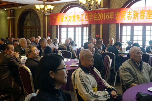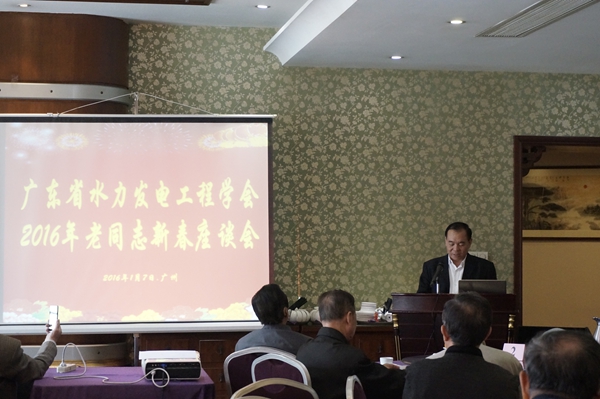 會上,洪榮坤理事長致辭並向大家介紹了當前國內的水電形勢和2015年學會工作情況;廣東省水利電力勘測設計研究院吳新平分院副總工與大家分享了"抽水蓄能設計新進展";學會秘書處播放了自己製作的"2015年學會風采"活動片以及"國際水電大會"活動介紹片。各位老領導、老專家自由發言,廣東電網原處長林誌遠向大家介紹了"太陽能光熱發電"的新概念新技術;廣東水電學會原秘書長李水貴為大家分析了當前國內的新政策新形勢;參會的其他老領導、老專家也紛紛從專業探討、為學會工作獻計獻策、為我省水電事業出謀劃策等角度積極發言、各抒己見。