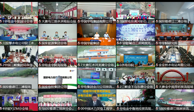 活動籌備階段,專委會按照“安全、簡潔、高效”的原則編寫了詳細清晰的活動方案和活動流程,麵對突發疫情按照防疫要求及時調整主會場布設方案,在參會單位眾多的情況下采用了協同難度極大的雲會議模式。同時與華能集團、大唐集團、華電集團、國家電投集團、三峽集團、國家能源集團、國開投集團、中國電建集團及各集團下屬有關單位和其他水電開發建設單位密切對接,對各分會場的倡議書簽訂、魚類放流和經驗交流等環節進行整體統籌和編排,活動前夕進行了三次聯調,對現場組織、畫麵切換和幕後調度等細節反複演練,為主會場和各分會場的活動效果提供堅實保障。