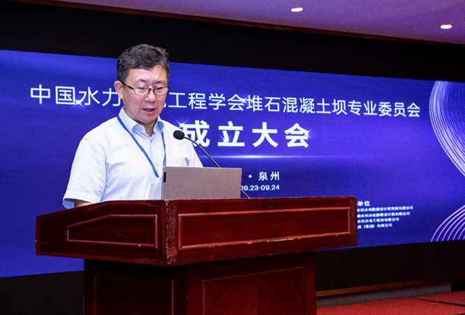 洪忠建總工代表泉州市水利局致辭,對水電學會在泉州召開專委會成立大會和各位領導專家的到來表示熱忱歡迎,對堆石混凝土技術在未來推廣發展充滿信心並大力支持。