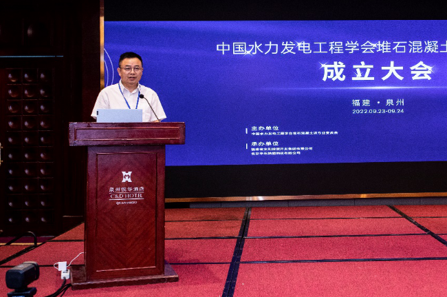 2022年9月23日,中國水力發電工程學會堆石混凝土壩專業委員會成立大會暨第一次工作會議在福建泉州以線上線下相結合的方式順利舉行。會議由堆石混凝土壩專委會主辦,福建省水利投資開發集團有限公司、北京華石納固科技有限公司聯合承辦,福建省水利水電勘測設計研究院有限公司、福建安瀾水利水電勘察設計院有限公司、福建省水利水電工程局有限公司、福建路港(集團)有限公司共同協辦。