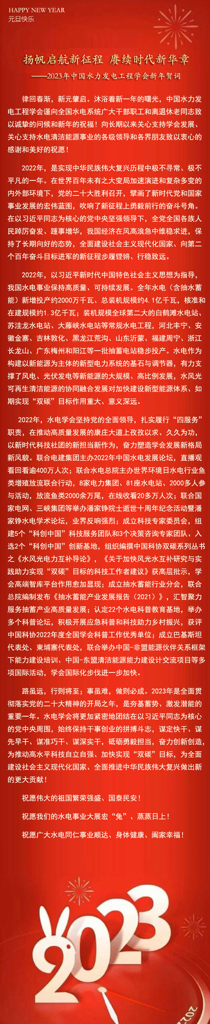 副理事長單位: 水利部(理事長單位) 國家能源局 國家開發銀行 中國電力企業聯合會 國家電網有限公司 中國南方電網有限責任公司 中國華能集團有限公司 中國華電集團有限公司 國家電力投資集團有限公司 中國長江三峽集團有限公司 國家能源投資集團有限責任公司 中國南水北調集團有限公司 國家開發投資集團有限公司 中國電力建設集團有限公司 中國能源建設集團有限公司 水電水利規劃設計總院 中國水利水電科學研究院 水利部交通運輸部國家能源局南京水利科學研究院 河海大學 常務理事單位: 中國國際工程谘詢有限公司 中國安能建設集團有限公司 清華大學 武漢大學 天津大學 四川大學 三峽大學 中國電機工程學會 潘家錚水電科技基金 南瑞集團有限公司(國網電力科學研究院有限公司) 國網新源集團有限公司 南方電網儲能股份有限公司 華能瀾滄江水電股份有限公司 華能西藏雅魯藏布江水電開發投資有限公司 廣西桂冠電力股份有限公司(龍灘水電開發有限公司) 華電雲南發電有限公司 貴州烏江水電開發有限責任公司(中國華電集團公司貴州分公司) 青海黃河上遊水電開發有限責任公司 國家電投集團雲南國際電力投資有限公司 國家電投集團五淩電力有限公司 中國長江電力股份有限公司 中國三峽建工(集團)有限公司 上海勘測設計研究院有限公司 國能大渡河流域水電開發有限公司 雅礱江流域水電開發有限公司 國投電力控股股份有限公司 哈爾濱電機廠有限責任公司 東方電氣集團東方電機有限公司 中國葛洲壩集團股份有限公司 中國電建集團北京勘測設計研究院有限公司 中國電建集團華東勘測設計研究院有限公司 中國電建集團西北勘測設計研究院有限公司 中國電建集團中南勘測設計研究院有限公司 中國電建集團成都勘測設計研究院有限公司 中國電建集團貴陽勘測設計研究院有限公司 中國電建集團昆明勘測設計研究院有限公司 中國水利水電第七工程局有限公司 中國水利水電第八工程局有限公司 中國水利水電第十四工程局有限公司 長江設計集團有限公司 理事單位: 國家能源局大壩安全監察中心 中國水利學會 中國大壩工程學會 浙江大學 大連理工大學 華中科技大學(水電與數字化工程學院) 西安理工大學 華北水利水電大學 湖北省水力發電工程學會 湖南省水力和新能源發電工程學會 廣東省水力和新能源發電工程學會 福建省水力和清潔能源發電工程學會 四川省水力發電工程學會 陝西省水力發電與新能源工程學會 青海省水力和新能源發電工程學會 英大傳媒投資集團有限公司 雲南電網有限責任公司 華能四川能源開發有限公司 中國大唐集團有限公司重慶分公司 大唐水電科學技術研究院有限公司 華電四川發電有限公司 華電金沙江上遊水電開發有限公司 國電南京自動化股份有限公司 華電西藏能源有限公司 國家能源集團西藏電力有限公司 中國中鐵股份有限公司 中國鐵建股份有限公司 中國建設基礎設施有限公司 中鐵工程裝備集團有限公司 中交第一航務工程局有限公司 中電建新能源集團股份有限公司 中國水務投資集團有限公司 中國水利水電第一工程局有限公司 中國水利水電第三工程局有限公司 中國水利水電第四工程局有限公司 中國水利水電第五工程局有限公司 中國水利水電第六工程局有限公司 中國水利水電第九工程局有限公司 中國水利水電第十工程局有限公司 中國水利水電第十一工程局有限公司 中國水利水電第十二工程局有限公司 中國電建市政建設集團有限公司(原水電十三局) 中國水利水電第十五工程局有限公司 中國水利水電第十六工程局有限公司 中國水電基礎局有限公司 中國電建集團國際工程有限公司 中國電建集團海外投資有限公司 中電建水電開發集團有限公司 中國電建集團山東電力建設有限公司 中國電建集團山東電力建設第一工程有限公司 中國電建集團江西省水電工程局有限公司 中國電力工程顧問集團有限公司 中國安能集團第一工程局有限公司 中國安能集團第二工程局有限公司 中國安能集團第三工程局有限公司 中國葛洲壩集團第一工程有限公司 中國葛洲壩集團第二工程有限公司 中國葛洲壩集團第三工程有限公司 中國葛洲壩集團三峽建設工程有限公司 水利部水利水電規劃設計總院 長江水利委員會長江科學院 黃河勘測規劃設計研究院有限公司 黃河水利水電開發集團有限公司 廣東省水利電力勘測設計研究院有限公司 中水北方勘測設計研究有限責任公司 中水東北勘測設計研究有限責任公司 哈爾濱大電機研究所有限公司 中國水利水電出版傳媒集團有限公司 北京中水科水電科技開發有限公司 北京峽光經濟技術谘詢有限責任公司 三峽水力發電廠 葛洲壩水力發電廠 新安江水力發電廠 華能瀾滄江水電有限公司小灣水電廠 惠州蓄能發電有限公司(惠州蓄能水電廠) 清遠蓄能發電有限公司 梅州蓄能發電有限公司 新華水力發電有限公司 四川省紫坪鋪開發有限責任公司 湖南建工集團有限公司 一般會員單位: 水利部農村電氣化研究所 水利部發展研究中心 水利部南京水利水文自動化研究所 國際小水電中心 北京水力發電工程學會 上海市水力發電工程學會 天津市水力發電工程學會 河北省水力發電工程學會 山西省水力發電工程學會 貴州省水力發電工程學會 