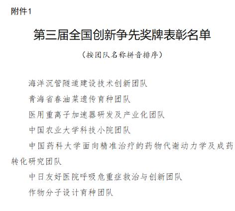 附件:1.第三屆全國創新爭先獎牌獲獎團隊名單