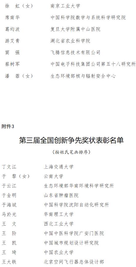 3.第三屆全國創新爭先獎狀獲獎者名單
