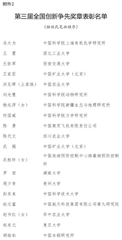 2.第三屆全國創新爭先獎章獲獎者名單