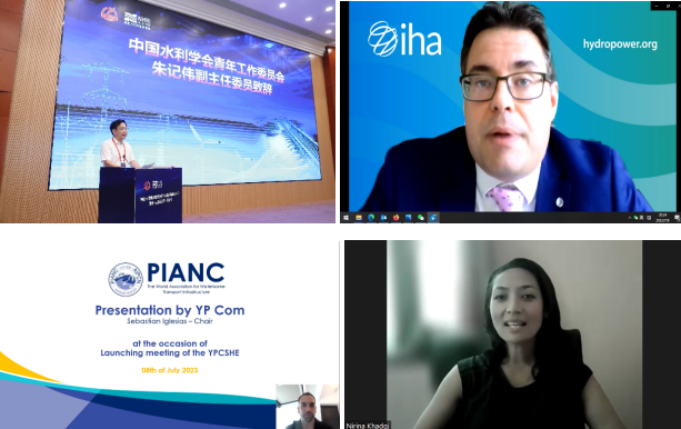 中國水利學會青年工作委員會副主任委員朱記偉代表兄弟青工委致辭,國際水電協會副總裁Pablo Valverde博士、國際航運協會青年工作委員會主席Sebastian Iglesias博士、亞洲水理事會青年專委會主席Nirina Khadgi博士分別通過視頻致辭。