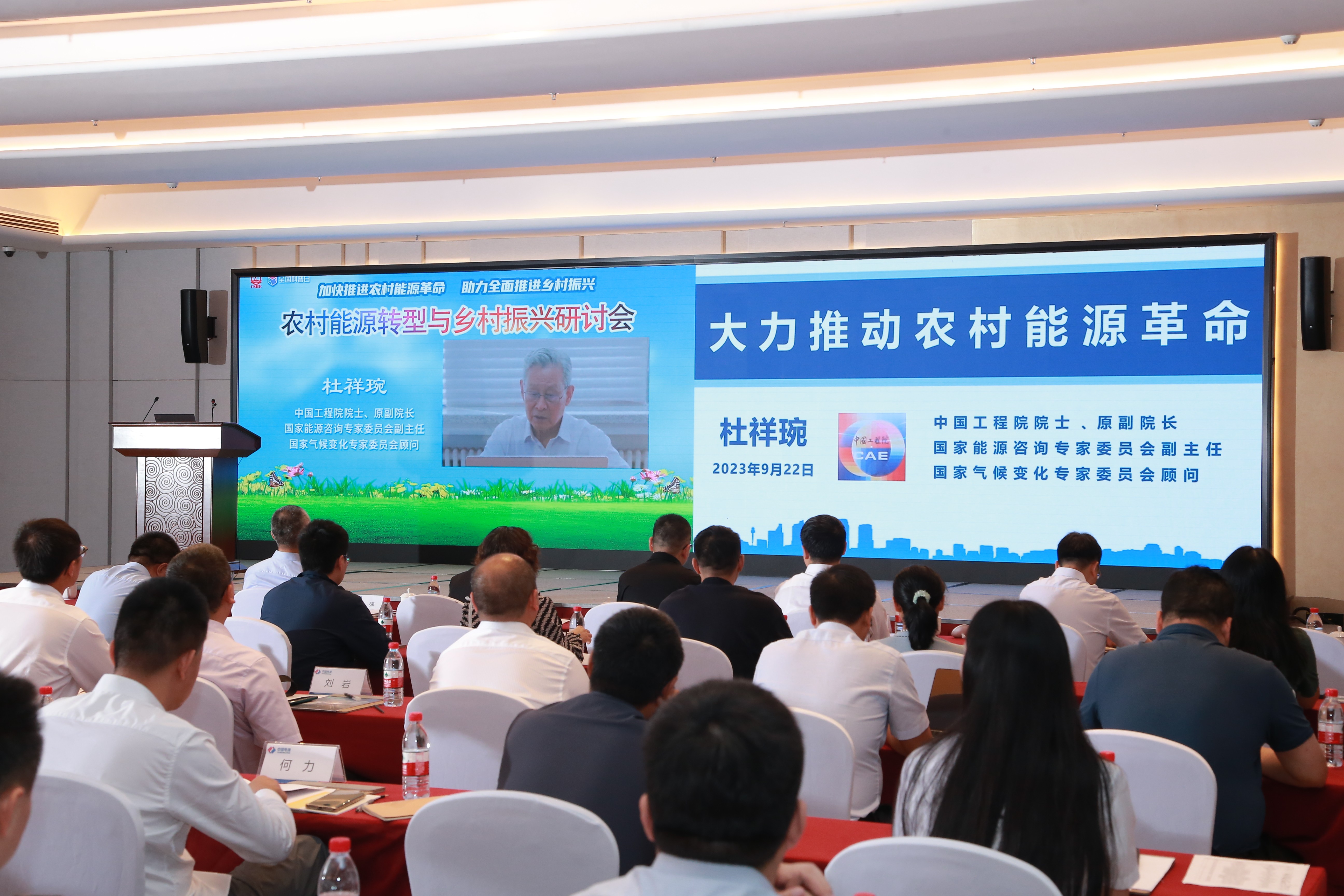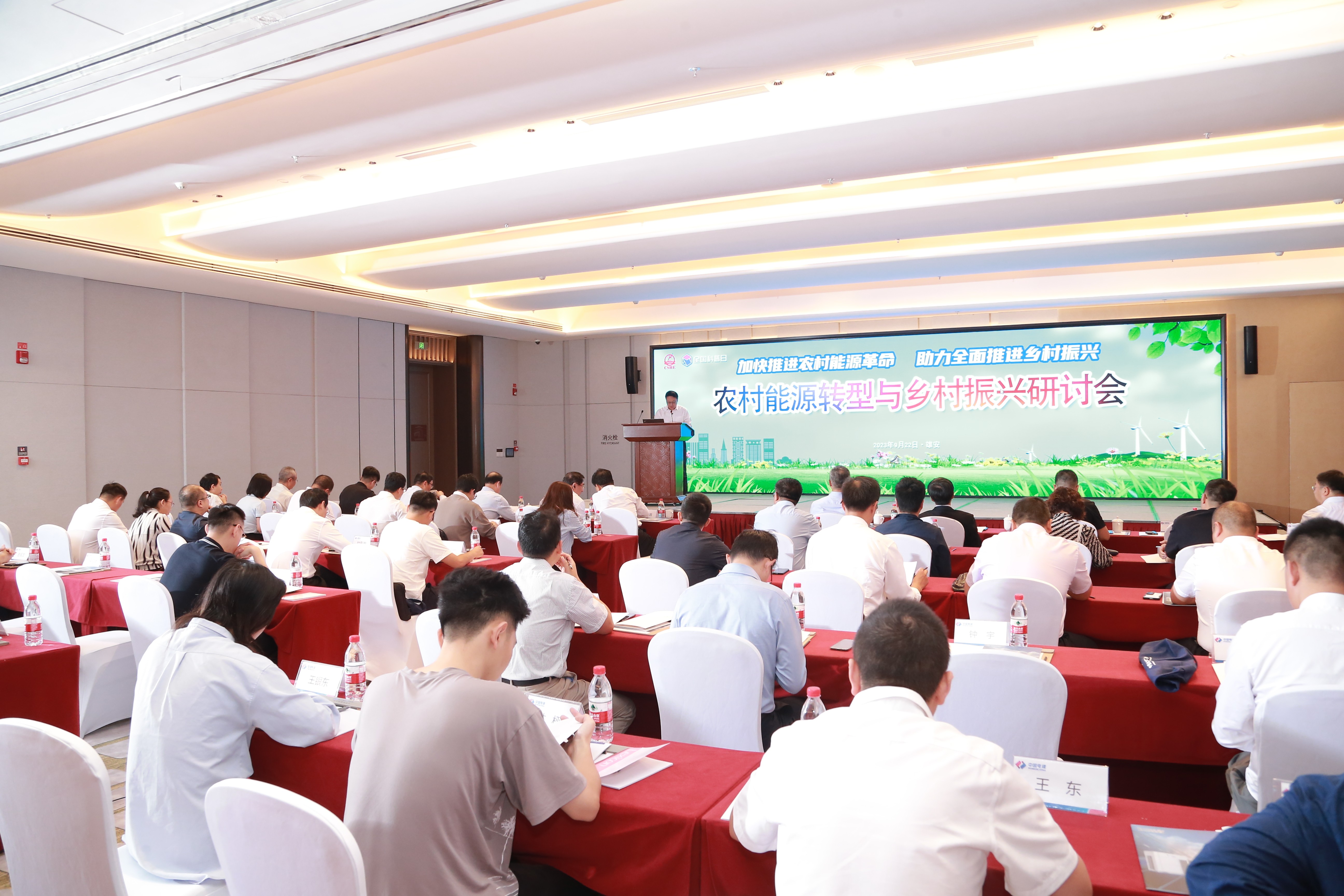 9月22日,以“加快推進農村能源革命,助力全麵推進鄉村振興”為主題的2023年全國科普日係列活動-農村能源轉型與鄉村振興研討會在河北雄安新區舉辦。研討會由188BETApp 和中國電力建設集團有限公司鄉村振興辦公室聯合主辦。中國工程院院士杜祥琬(線上參會),雄安新區黨工委副書記、管委會常務副主任田金昌,中國電力建設集團有限公司原副總經理姚強,國家開發銀行貸款委員會原專職委員王偉化,水電水利規劃設計總院黨委委員、總規劃師張益國,188BETApp 常務副秘書長席浩,以及來自全國能源及上下遊企業的70餘名管理人員、工程技術人員及鄉村振興科技工作者參加了本次研討會,同時線上有9.6萬人次觀看了會議直播。會議由188BETApp 秘書長助理、科普部主任楊永江主持。