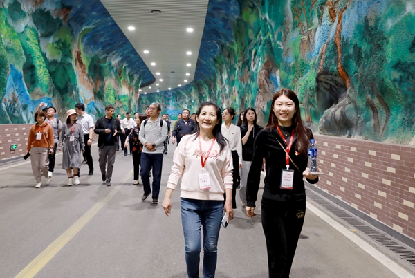 上圖:蓮蓄交通洞科普長廊;中圖:在蓮蓄交流座談;下圖:白蓮河水利樞紐工程