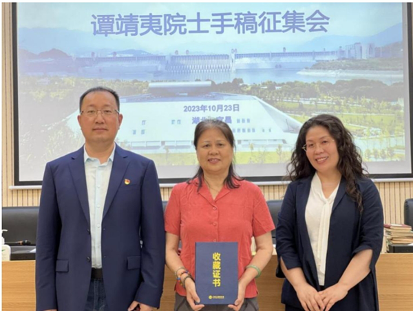 作為中國水電事業的奠基者、開拓者之一,譚靖夷院士長期從事水利水電工程建設,他把畢生的精力和心血奉獻給了中國的水電事業。在深切緬懷譚靖夷院士的同時,三峽工程博物館要保管利用好這批譚院士生前遺留工作手稿,深入挖掘並大力弘揚老一輩水電科技工作者愛國、奉獻、求真、創新、協同、育人的精神,以鮮明生動的事跡講好水電科學家的故事,激勵一代又一代的中國水電科技工作者、青年學生切實擔當起實現中國式現代化、建設科技強國的曆史重任,為實現中華民族偉大複興的“中國夢”貢獻力量。