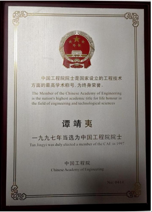 譚靖夷院士於1921年11月6日出生在湖南省衡陽縣的一個小山村,1941年高中畢業時因成績優異被保送到已遷至貴州福泉的交通大學唐山工學院(今西南交通大學)土木工程係就讀,1946年進入了當時暫設在四川長壽縣龍溪河的資源委員會中國水力發電工程總處工作,1948年奉調去福建古田參加古田溪一級水電站的籌建工作,1956年5月隨施工隊伍轉戰嶺南參加廣東流溪河水電站建設,1958年擔任五強溪水電工程副總工程師,1969年3月被下放到木工班勞動的譚靖夷轉戰貴州,參與烏江渡水電站建設;1989年,譚靖夷從水電八局總工程師崗位退休,1990年開始從事水力發電工程技術谘詢;1995年到2006年,譚靖夷先後17次隨國務院三峽工程建設委員會質量專家組赴三峽工地進行質量檢查。1985年,譚靖夷作為“在岩溶峽穀地區建設烏江渡水電站”項目主要負責人,獲得1985年國家科學技術進步一等獎。1997年,譚靖夷當選為中國工程院院士。作為一名水利水電工程施工專家,譚院士被人譽為“從江河裏走來的院士”。從業67年來,他親自參與建設和參與技術谘詢的水電大壩有87座,他的足跡踏遍了祖國的江河湖川,福建古田溪、廣東流溪河、湖南柘溪、貴州烏江渡、湖南東江等大中型水電站的建設以及湖南韶山灌區、歐陽海灌區、桃江水庫等水利工程都留下了他的名字。