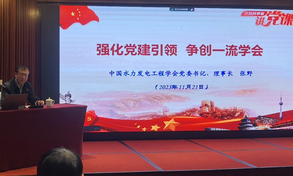 張野圍繞深入學習貫徹習近平總書記關於社會組織黨建工作的重要指示批示精神的認識體會,係統回顧了今年以來學會以黨建為引領推動黨建和業務深度融合,在學術交流、科學普及、智庫谘詢、國際交流、標準製定、期刊建設、內部治理等方麵的主要工作,並就進一步發揮好學會三層黨組織體係作用,深化黨建強會引領創新發展提出要求。他強調,黨建是引領學會正確發展方向的根本保證,要充分發揮學會行業平台優勢和會員企業資源優勢,不斷探索“黨建+”工作模式,把學會打造成有溫度、可信賴的科技工作者之家,更廣泛團結凝聚廣大水電和新能源科技工作者,為紮實推進中國式現代化建設貢獻學會智慧和力量。