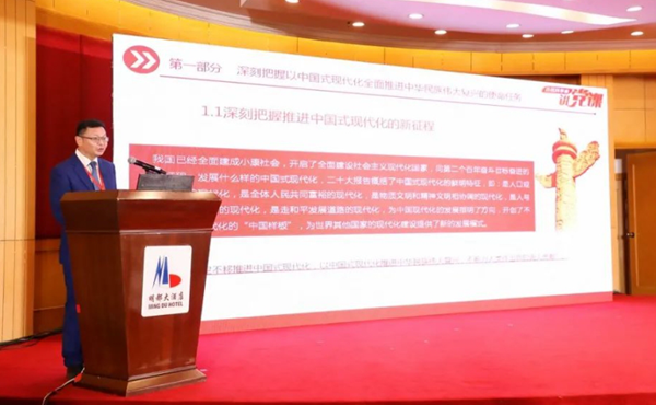 為激勵廣大科技工作者從黨的百年奮鬥曆程中汲取繼續前進的智慧和力量,季曉勇作為海外分會黨的工作小組組長在“百名科學家講黨課”活動環節中,以《高質量黨建引領“一帶一路”高質量發展》為主題,與大家共同深入學習貫徹黨的二十大精神,結合黨的各項政策節點回顧了中國海外水電工程的階段性發展曆程,以黨的二十大精神指引,探討如何更好地聚焦“碳達峰碳中和”目標,推進海外業務綠色可持續高質量發展,號召全員攜手砥礪奮進、勇毅前行,為推進中華民族偉大複興貢獻智慧和力量。